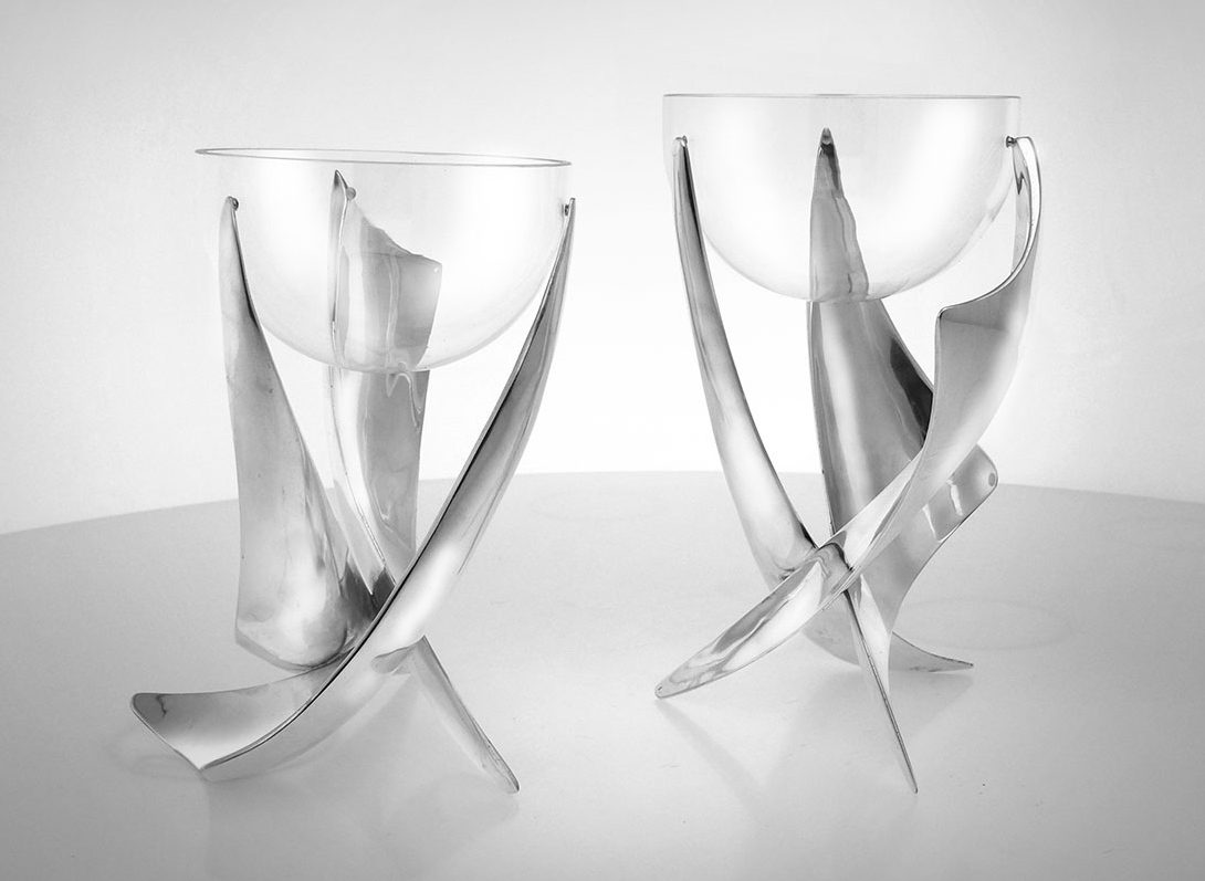 Die Kelche entsprechen in ihrer Form dem Gestus der Anbetung beim Lobpreis, der in dieser Gemeinde offenherzig praktiziert wird. Seele, Geist und Körper bilden eine Einheit und so sind auch die Kelche, als Mittler des Geistigen, gestaltet.